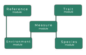 The relational database schema contains five core modules. First, the Reference module stores bibliographic metadata (e.g., authorship, publication type, publication year). Second, the Trait module integrates functional traits included in the database. These traits are grouped into four classes (i.e. behavioral, morphological, phenological, and physiological traits). Third, the Measure module includes each measure (i.e. attribute of a trait) of a particular trait. It is linked to the Trait module. The Measure module includes also information about the effective size (i.e. notifying on how many individuals is based the trait measure), the ploidy level (e.g., diploid or triploid fish), the development stage (i.e. larvae, juvenile, adult, or unknown), the sex (i.e. male, female, hermaphrodite, or unknown), the type of measure (i.e. direct measurement, computed values, or predicted through modeling approach), and the name of measure recorder (i.e. the data contributor for a particular measure) associated to each measure. Fourth, the Environment module displays information about the environment in which the measures have been recorded. The environmental features are classified into three classes: abiotic environments (e.g., geographic occurrence, water parameters), biotic environment (e.g., population density, environment species diversity), and information about feeding (e.g., ad libitum). Fifth, the Species module (i.e. providing a table with the valid names of fish species based on FishBase species database (www.fishbase.org). For further details about TOFF structure please see DOI: 10.1038/s41597-019-0307-z.